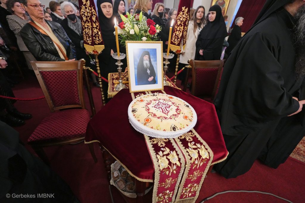Στο τέλος της θείας Λειτουργίας έγινε το 40νθήμερο μνημόσυνο υπέρ αναπαύσεως της ψυχής του μακαριστού κτίτορος και Καθηγουμένου της Ιεράς Μονής Αρχιμανδρίτη Παντελεήμονος Κορφιωτάκη, κατά το οποίο προεξήρχε ο Σεβασμιώτατος Μητροπολίτης Ξάνθης κ. Παντελεήμων και έλαβαν μέρος άπαντες οι παρευρισκόμενοι Αρχιερείς, ενώ ο Σεβασμιώτατος Μητροπολίτης Γέρων Καισαρείας κ. Θεοφύλακτος μετέφερε τις ευχές του Μακαριωτάτου Πατριάρχου Αλεξανδρείας κ. Θεοδώρου.