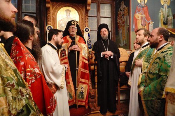 Του Πανηγυρικού Αρχιερατικού Εσπερινού προεξήρχε και χοροστάτησε ο παρεπιδημών Θεοφιλέστατος Επίσκοπος Συνάδων κ. Αντώνιος, εκ του Οικουμενικού Πατριαρχείου, βοηθός Επίσκοπος της Ιεράς Αρχιεπισκοπής Αμερικής και καθηγητής της Ιεράς Θεολογικής Σχολής Τιμίου Σταυρού Βοστώνης. Στον Εσπερινό παρέστη συμπροσευχόμενος και Μητροπολίτης Θεσσαλονίκης κ. Φιλόθεος.