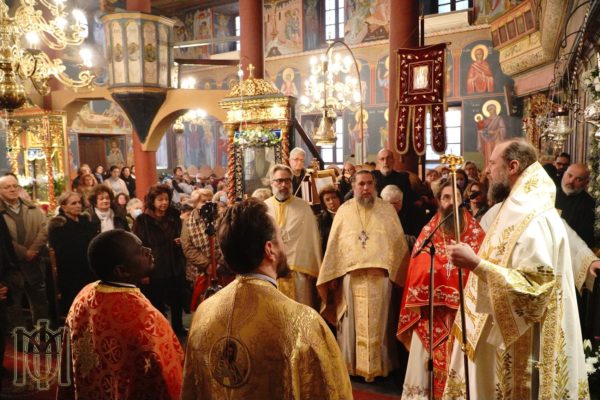 Του Πανηγυρικού Αρχιερατικού Εσπερινού προεξήρχε και χοροστάτησε ο παρεπιδημών Θεοφιλέστατος Επίσκοπος Συνάδων κ. Αντώνιος, εκ του Οικουμενικού Πατριαρχείου, βοηθός Επίσκοπος της Ιεράς Αρχιεπισκοπής Αμερικής και καθηγητής της Ιεράς Θεολογικής Σχολής Τιμίου Σταυρού Βοστώνης. Στον Εσπερινό παρέστη συμπροσευχόμενος και Μητροπολίτης Θεσσαλονίκης κ. Φιλόθεος.