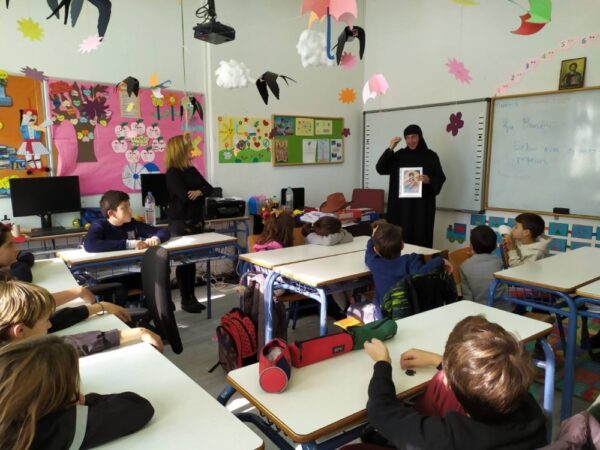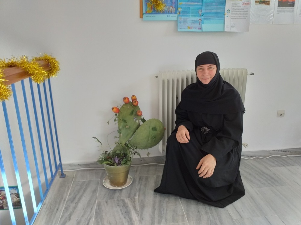 Η Μοναχή Δωροθέα, υπεύθυνη της Ιεράς Μονής Χρυσοπηγής Σικίνου, ύστερα από πρόσκληση της Διευθύντριας κας Παρασκευής Μελίση, επισκέφθηκε το Σχολικό Συγκρότημα της Σικινου και μίλησε στους μαθητές για την τέχνη της Αγιογραφίας και τους καθοδήγησε να ιστορήσουν εικόνα των Αγγέλων, για το έργο και την αποστολή των οποίων αναφέρθηκε με απλά λόγια, ενώ τους προσέφερε συμβολικά, ως χριστουγεννιάτικο δέντρο, κλαδί φραγκοσυκιάς, στολισμένο με φυσικά στολίδια.
