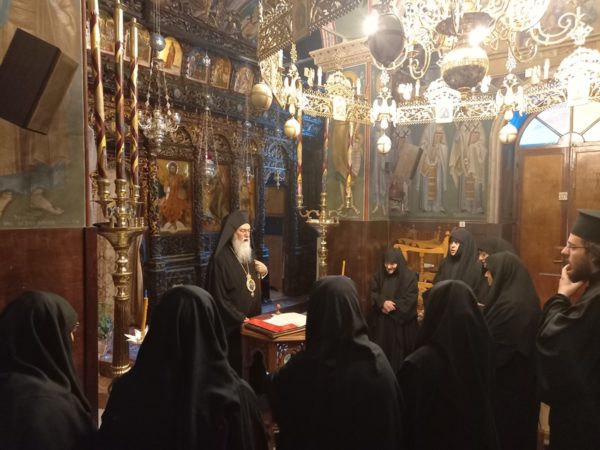 Δεν παρέλειψε φυσικά να απευθύνει λόγους πνευματικούς και επιστηρικτικούς στην απορφανισμένη Αδελφότητα, ώστε η εκλογή της νέας Ηγουμένης να γίνει με κριτήρια την γενικότερη πρόοδο και την αίσια συνέχιση της πνευματικής ζωής, που θα εγγυηθεί την συνέχιση της σταθερότητας στην πορεία της Ιστορικής Ιεράς Μονής, την οποία διακυβερνά η Παναγία μας, ως η μόνη Καθηγουμένη αυτής, στηρίζοντας και εμπνέοντας τις μοναχές και τους ευσεβείς προσκυνητές.