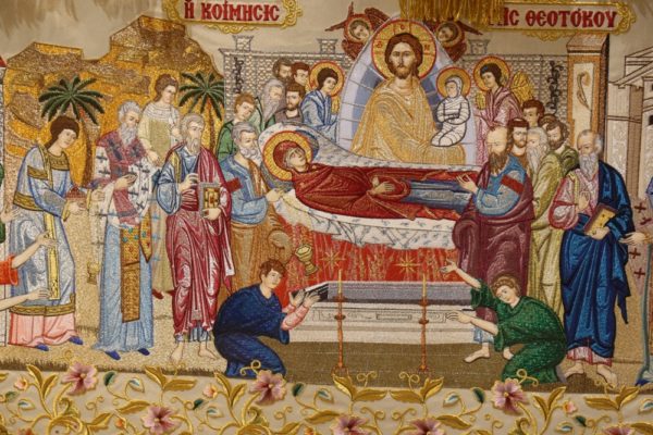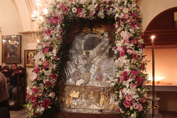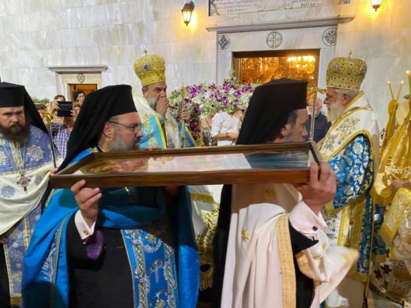 Ιεράρχες, κληρικοί αλλά και πιστοί έψαλλαν – όπως επιτάσσει το έθιμο – όλοι μαζί τα Εγκώμια της Θεοτόκου στο προαύλιο της Μονής Επιταφίου.