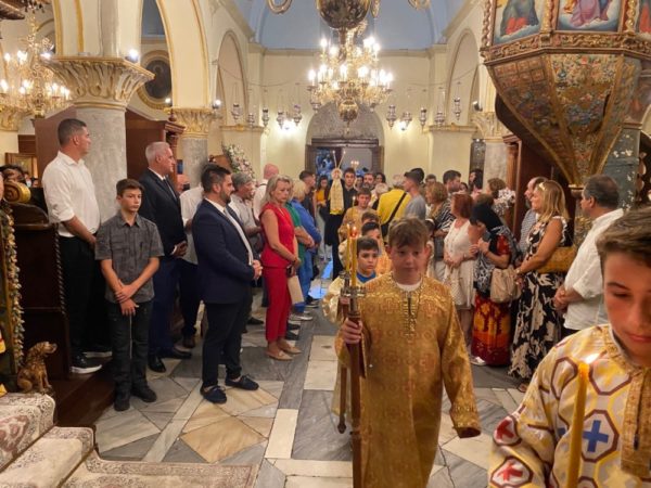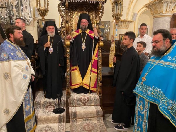 Την παραμονή της Απόδοσης της Κοίμησης της Θεοτόκου τελέσθηκε ο Μέγας Εσπερινός του Μητροπολίτου Θήρας, Αμοργού και Νήσων κ. Αμφιλοχίου και συγχοροστατούντος του Μητροπολίτου Σύρου, Τήνου, Άνδρου, Κέας και Μήλου κ. Δωροθέου Β’.