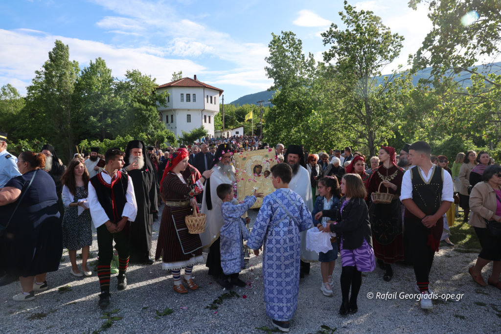 Την Ιερά Εικόνα κόμισε στο μοναστήρι στρατιωτικό όχημα ενώ η φιλαρμονική μπάντα του Δήμου Παιονίας απέδωσε τιμές.