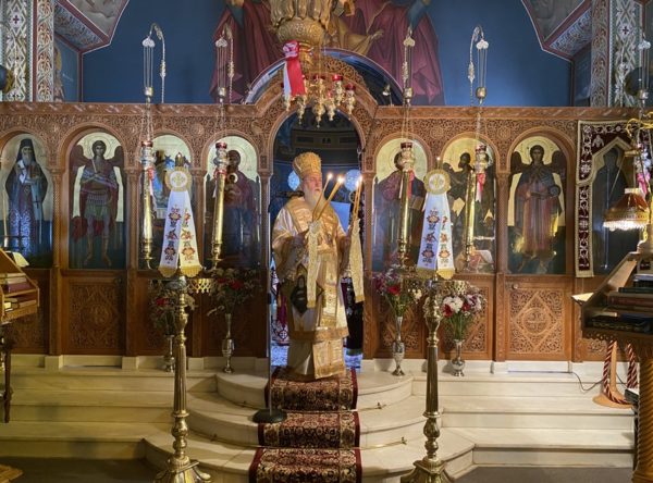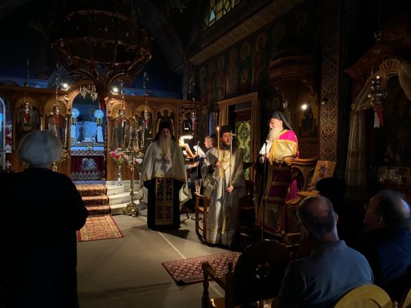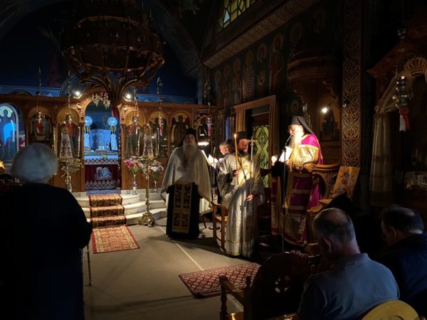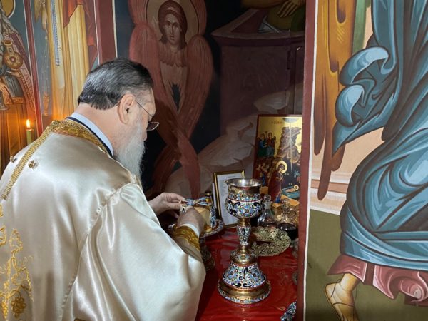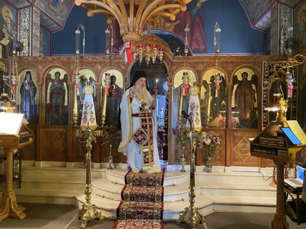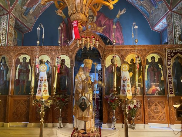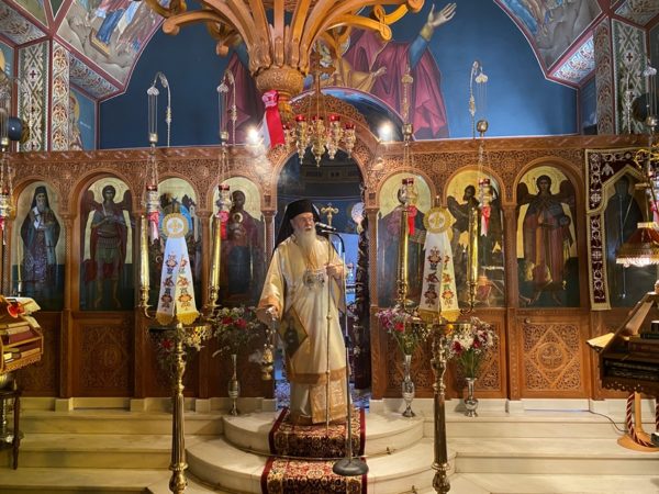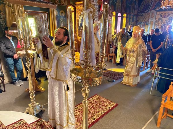 Ανήμερα της Εορτής, Τρίτη της Διακαινησίμου, 7 Μαΐου 2024, ο Σεβασμιώτατος πλαισιούμενος από τους συνοδούς του Κληρικούς τέλεσε πανηγυρική Αρχιερατική Θ. Λειτουργία, στην οποία παρέστησαν η Πρόεδρος του Δικηγορικού Συλλόγου Κορίνθου κ. Παναγιώτα (Πέννυ) Επιβατινού και ευσεβείς προσκυνητές.