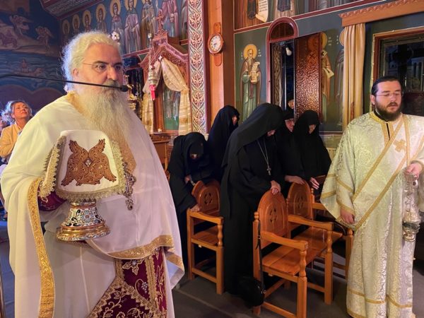 Όπως είναι γνωστό την Τρίτη της Διακαινησίμου, έκαστου έτους, εορτάζεται η εύρεση του Ιερού Σκηνώματος του Οσίου Πατρός ημών Παταπίου στην ομώνυμη Ιερά Γυναικεία Κοινοβιακή Μονή, στο Λουτράκι. Την παραμονή, Δευτέρα της Διακαινησίμου, 6 Μαΐου 2024, ο Μητροπολίτης Κορίνθου κ. Διονύσιος xοροστάτησε στον Μέγα Πανηγυρικό Εσπερινό πλαισιούμενος από τον Ιεροκήρυκα της Ι. Μητροπόλεως Πανοσ. Αρχιμ. κ. Άνθιμο Παπαλεξόπουλο τους Διακόνους π. Δαμασκηνό Γεννηματά και π. Χρήστο Χίλια.