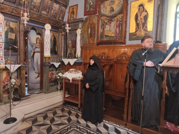 Τέλος, αφού μετέφερε τις ευχές και τις ευλογίες του Σεβασμιωτάτου Ποιμενάρχου μας κ. Διονυσίου στην Ηγουμένη Γερόντισσα Ευαγγελία και στην περί αυτήν αδελφότητα, ευχήθηκε στις αδελφές και στους προσκυνητές της Ι. Μονής η Παναγία μας να γίνει αστείρευτη πηγή θείων ευλογιών για όλους μας. Ακολούθησε μικρά Λιτάνευση, λόγω δυσμενών καιρικών συνθηκών, της Ι. Εικόνος της Ζωοδόχου Πηγής και του εις την Ι. Μονή φυλασσόμενου Ιερού Λειψάνου του εν Αγίοις Πατρός ημών Μακαρίου Αρχιεπισκόπου Κορίνθου του Νοταρά, η μνήμη του Οποίου εκ μεταθέσεως εορτάζεται την Κυριακή του Θωμά.