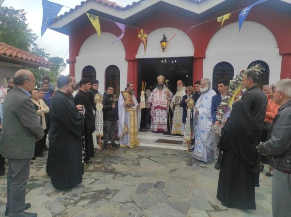 Τέλος, αφού μετέφερε τις ευχές και τις ευλογίες του Σεβασμιωτάτου Ποιμενάρχου μας κ. Διονυσίου στην Ηγουμένη Γερόντισσα Ευαγγελία και στην περί αυτήν αδελφότητα, ευχήθηκε στις αδελφές και στους προσκυνητές της Ι. Μονής η Παναγία μας να γίνει αστείρευτη πηγή θείων ευλογιών για όλους μας. Ακολούθησε μικρά Λιτάνευση, λόγω δυσμενών καιρικών συνθηκών, της Ι. Εικόνος της Ζωοδόχου Πηγής και του εις την Ι. Μονή φυλασσόμενου Ιερού Λειψάνου του εν Αγίοις Πατρός ημών Μακαρίου Αρχιεπισκόπου Κορίνθου του Νοταρά, η μνήμη του Οποίου εκ μεταθέσεως εορτάζεται την Κυριακή του Θωμά.