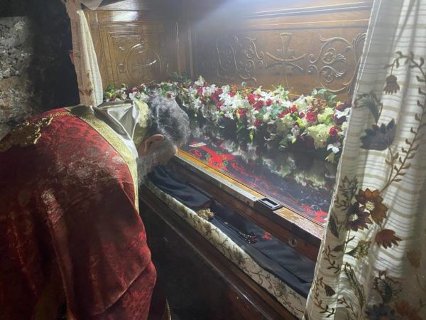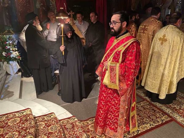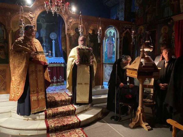 Στην συνέχεια, κατά την τάξη της Ιεράς Μονής, τελέσθηκε Ιερά Αγρυπνία στο Καθολικό της Ιεράς Μονής με την παρουσία πολλών ευλαβών Προσκυνητών, που καθ’ όλη την διάρκεια της νύκτας προσέρχονταν να ασπαστούν και να προσφέρουν την ευχαριστία τους στον θαυματουργό