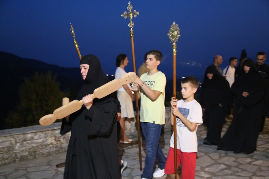 Την Δευτέρα, 28 Αυγούστου, τελέσθηκε ο Μέγας Εσπερινός της εορτής στον αύλειο χώρο του Μοναστηριού. Στον Εσπερινό πλαισίωσαν τον Σεβασμιώτατο οι Ιερείς, π. Θωμάς Βαμβίνης, Γενικός Αρχιερατικός Επίτροπος, ο Αρχ. π. Πολύκαρπος Θεοφάνης, ο π. Κωνσταντίνος Σπανός, ο π. Γεώργιος Γεωργάτος και οι Διάκονοι π. Παίσιος Παρασκευάς και π. Αντώνιος Αντωνιάδης.