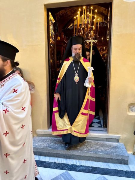 Ο Σεβασμιώτατος Μητροπολίτης Θήρας, Αμοργού και Νήσων κ. Αμφιλόχιος κατά την εορτή του Προφήτου Ηλιού χοροστάτησε στον Πανηγυρικό Εσπερινό στο καθολικό της Ιεράς Μονής Προφήτου Ηλιού περιστοιχισμένος από τον Καθηγούμενο της Ιεράς Μονής αρχιμανδρίτη Καλλίνικο Ρούσσο, την αδελφότητα της Ιεράς Μονής καθώς και από κληρικούς της νήσου αλλά και προερχομένους από άλλες Μητροπόλεις.
