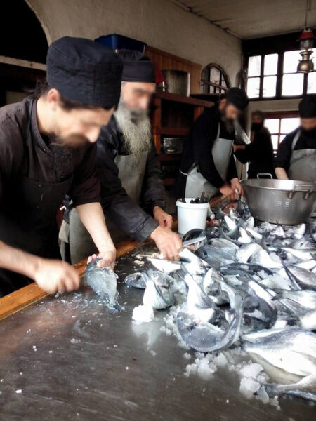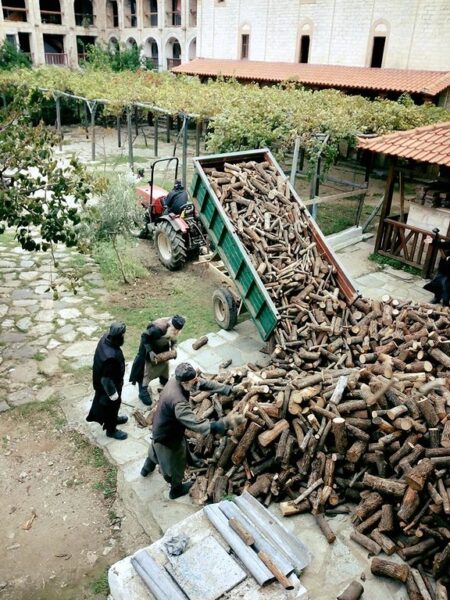 Επί του Αγίου Όρους κινούνται για προμήθειες σε τρόφιμα και φάρμακα και ιατρική φροντίδα στις Καρυές, χρησιμοποιώντας τζιπ και άλλα οχήματα. Κυκλοφορούν, επίσης, έφιπποι και οπλοφορούντες.