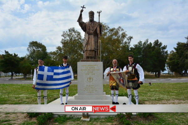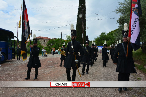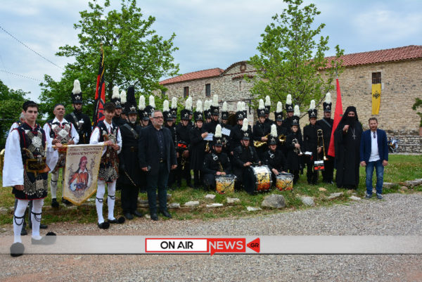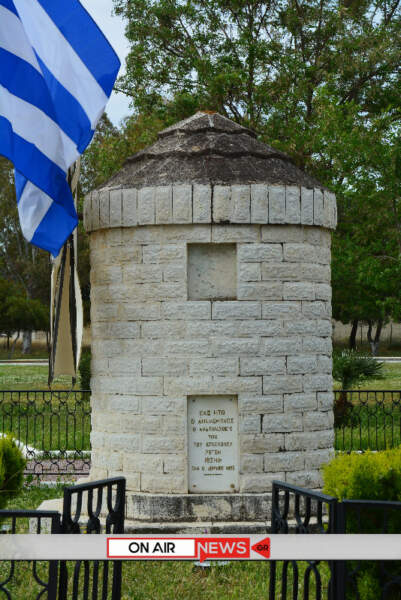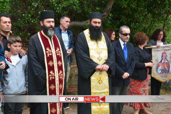 Εκεί, προεξάρχοντος του καθηγουμένου της Μονής αρχιμανδρίτου Ιωσήφ Ζωγράφου και της συνοδείας του, τελέστηκε επιμνημόσυνη δέηση και με μια λιτή και σεμνή τελετή, έντονα όμως συναισθηματικά φορτισμένη, υψώθηκε η σημαία στον ιστό της Ιεράς Μονής με την Φιλαρμονική «Δ. Σολωμός» να αποδίδει τιμές.