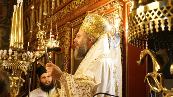 Πριν το τέλος της Θείας Λειτουργίας ο Σεβασμιώτατος παρουσίασε στο εκκλησίασμα το νέο Εφημέριο της ενορίας Σταυροφόρο Οικονόμο Αθανάσιο Αραπογιάννη και του ευχήθηκε καλή διακονία στα νέα του καθήκοντα.