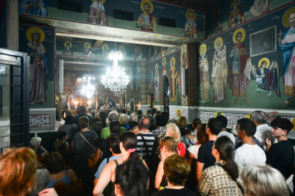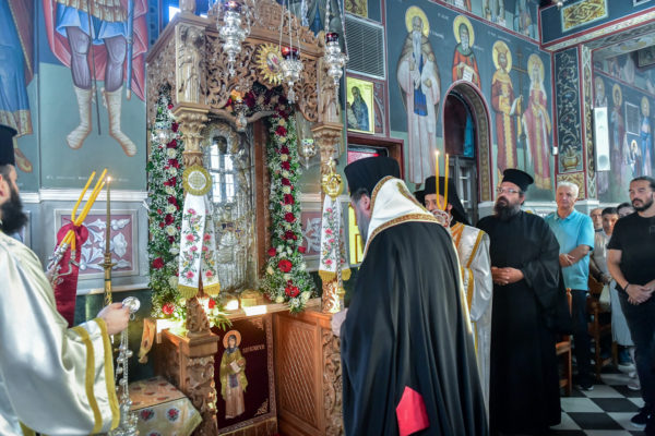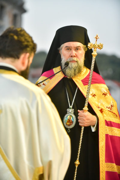 Αμέσως μετά την Δοξολογία, επί τη υποδοχή των ιερών λειψάνων, τελέσθηκε, με την πολυπληθή, παρά τον θερμοκρασιακό καύσωνα, παρουσία ευλαβών χριστιανών, η ακολουθία του πανηγυρικού Αρχιερατικού Εσπερινού της εορτής της Αγίας Παρασκευής, στο τέλος του οποίου, ο Σεβασμιώτατος εκήρυξε εμπνευσμένως τον θείο λόγο, σημειώνοντας μεταξύ άλλων και τα εξής: