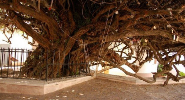 Στον κορμό έχει τοποθετηθεί εικονοστάσι και δίπλα του μπορεί να δει κανείς άφθονα αφιερώματα, τα οποία οι πιστοί είτε αφήνουν στον κορμό είτε κρεμούν στα κλαδιά του δέντρου.