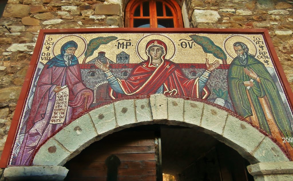 Επίσης η εντοιχισμένη κτητορική επιγραφή σε πέτρινη πλάκα μήκους 1.52 μέτρου και ύψους 0.22 μέτρα επάνω από την θύρα εισόδου από τον πρόναο στον κυρίως Ναό αλλά και η βυζαντινή τοιχογραφία της βρεφοκρατούσας Θεοτόκου κατά τον τύπο της “Παναγίας Οδηγήτριας” που κατά τον Ορλάνδο κατασκευάσθηκε προ του 1453 καθώς επίσης και το δάπεδο της Μονής το οποίο είναι μαρμαροθετημένο και εκτείνεται σε όλη την επιφάνεια του κυρίως Ναού και του εσωνάρθηκα, δηλαδή εκτάσεως 100 τ.μ.