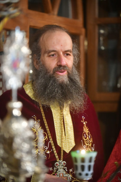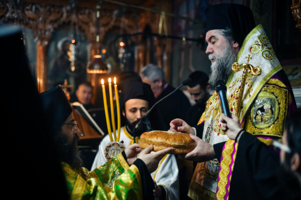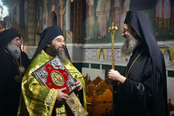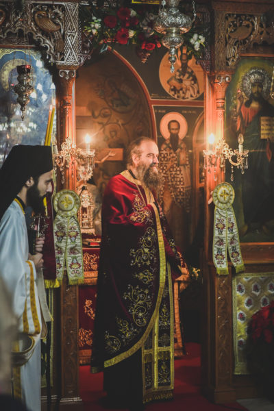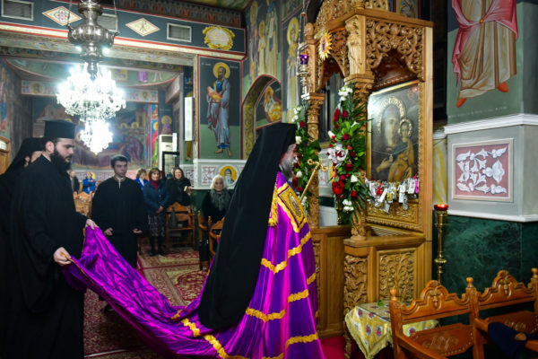 Προ της απολύσεως της ακολουθίας του Πανηγυρικού Εσπερινού, ο Σεβασμιώτατος, προσέφερε, κατ’ ιδίαν φιλοτιμία και προαίρεση, ως μόνιμο σημείο ευλογίας και αγιασμού των ενασκουμένων πατέρων και των ευλαβών προσκυνητών της ανδρώας μάνδρας της Αγίας Παρασκευής, ιερό χιτώνα, με κεντημένη την μορφή της Οσίας Παρασκευής της Επιβατινής (11ου αιώνα), ο οποίος καλύπτει την λάρνακα, εντός της οποίας υπάρχει αποθησαυρισμένο το άφθορο λείψανο της οσίας, στην πόλη του Ιασίου στην Ρουμανία.