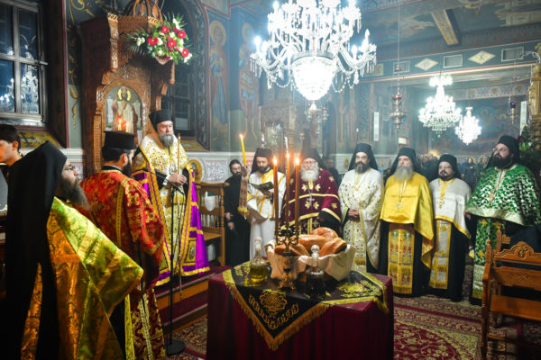 «Τα ιερά λείψανα των αγίων της Εκκλησίας μας», είπε, μεταξύ άλλων, ο Σεβασμιώτατος, «γεμάτα φως, χάρη και αγιοσύνη, είναι δεκτικά, αλλά και μεταδοτικά της ακτίστου χάριτος του Θεού, μεταφέρουν αυτήν την θεία χάρη, ακόμη και στα υλικά στοιχεία, με τα οποία έρχονται σε επαφή, παρέχουν ιάσεις, στηριγμό και ευλογία σε όσους προστρέχουν με πίστη θερμή στην χάρη τους».