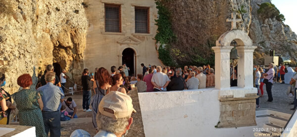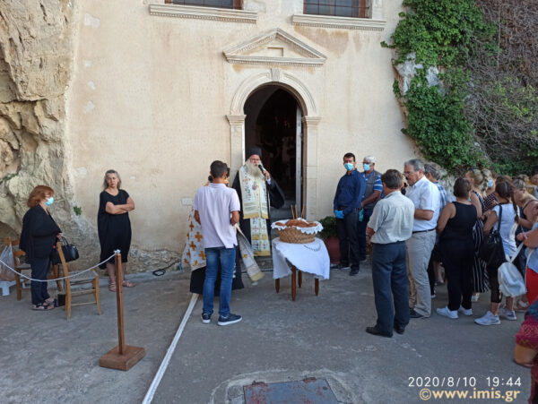 Το απόγευμα της Δευτέρας 10 Αυγούστου 2020 ο Σεβ. Μητροπολίτης Ιεραπύτνης και Σητείας κ. Κύριλλος χοροστάτησε κατά την ακολουθία του Εσπερινού και του Μικρού Παρακλητικού Κανόνος προς την Υπεραγία Θεοτόκο, και στο τέλος ευλόγησε τους προσφερόμενους άρτους και κήρυξε κατάλληλα τον θείο λόγο στο προαύλιο του σπηλαιώδους ναού της Ιεράς Μονής Παναγίας Φανερωμένης Ιεράπετρας.