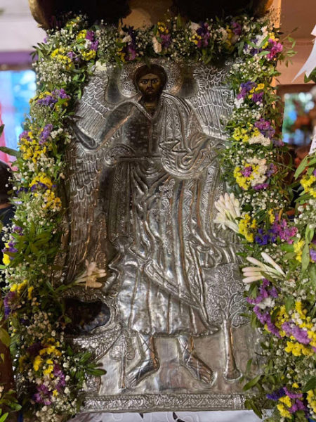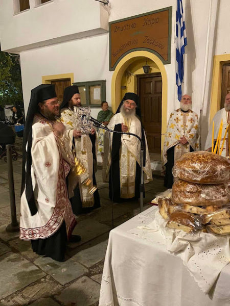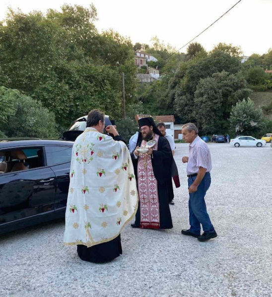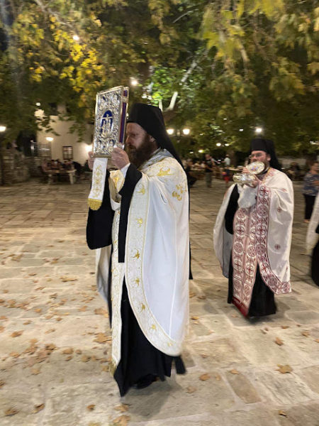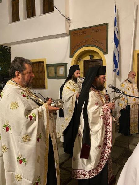Μετά την υποδοχή έγινε ο εόρτιος Εσπερινός, χοροστατούντος του επισκέπτη Καθηγουμένου εκ της Μητροπόλεως Τρίκκης.
