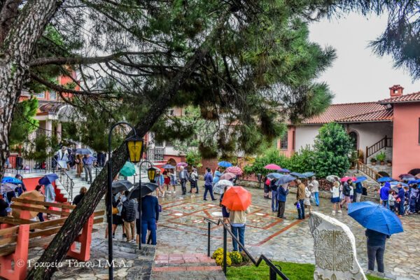 Ακολούθησε Τρισάγιο επί του Μνήματος του Μακαριστού Γέροντος και Πνευματικού οδηγού της Μοναστικής Αδελφότητας, καθώς επίσης μοναστηριακό κέρασμα και τράπεζα (σύμφωνα πάντοτε με τις σχετικές οδηγίες των αρμοδίων υγειονομικών αρχών), όπου και ακούσθηκαν λόγοι πνευματικοί οικοδομής μέσα από τις ομιλίες του π. Συμεών Κραγιοπούλου.