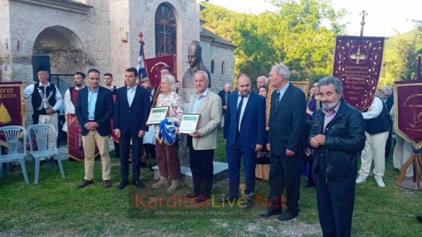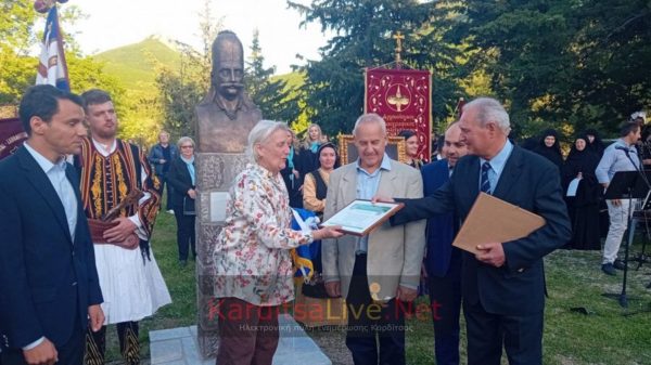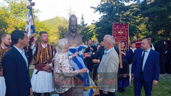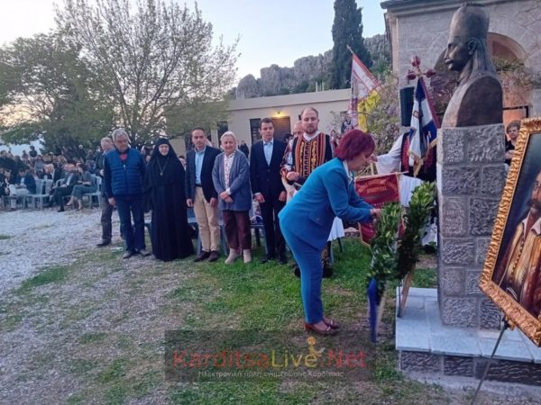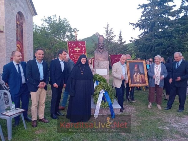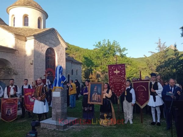 Τα αποκαλυπτήρια της χάλκινης προτομής που φιλοτέχνησε ο γλύπτης κ. Βασίλειος Παπασάiκας, έπειτα από πρωτοβουλία της Ένωσης Αγραφιώτικων Χωριών, με την στήριξη της Περιφέρειας Θεσσαλίας – Περιφερειακής Ενότητας Καρδίτσας πραγματοποιήθηκαν το απόγευμα της Τρίτης (22/4) από τους απόγονους του ήρωα κ.κ. Ελένη Καραϊσκάκη – Κάτρη και Γεώργιο Καραϊσκάκη – Λεωνίδα παρουσία των τοπικών φορέων και αρχών και πλήθους κόσμου κατά τη διάρκεια εκδήλωσης που συνδυάστηκε με την αυριανή γιορτή του Αγίου Γεωργίου κατά την οποία πανηγυρίζει η Ιερά Μονή.