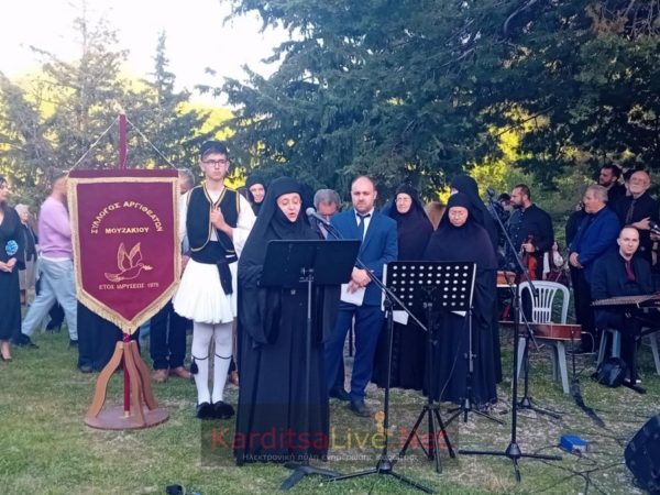 Στεφάνια στην προτομή κατατέθηκαν από τον Υποδιοικητή του ΚΕΣΝ Α/νχη Γ. Μαγκούτη ως εκπροσώπου του Στρατού και την Εντεταλμένη Περιφερειακή Σύμβουλο κ. Αθ. Πέτσα- Ματζιάρα ως εκπροσώπου της Περιφέρειας Θεσσαλίας για να ακολουθήσει ο Εθνικός Ύμνος από Δημοτική Χορωδία Δήμου Μουζακίου, η οποία απέδωσε και άλλα πατριωτικά τραγούδια και η εκδήλωσε ολοκληρώθηκε με την εμφάνιση χορευτικών από τον Πολιτιστικό Σύλλογο Μαυρομματίου «Ο Καραϊσκάκης», τους Μορφωτικούς Συλλόγους Αργιθεατών Μουζακίου και Αργιθεατών Τρικάλων τον Μ.Ε.Σ. Δρακότρυπας «Η Ανάπλασις», τον Α.Λ.Π. Σ. Μουζακίου «Οι Γόμφοι» το Χορ. Όμιλος Κέδρου, το Σύνδεσμο Σαρακατσαναίων ν. Λάρισας «Ο Κατσαντώνης και το Μ.Σ. Αμπελικού – Λαμπερού.