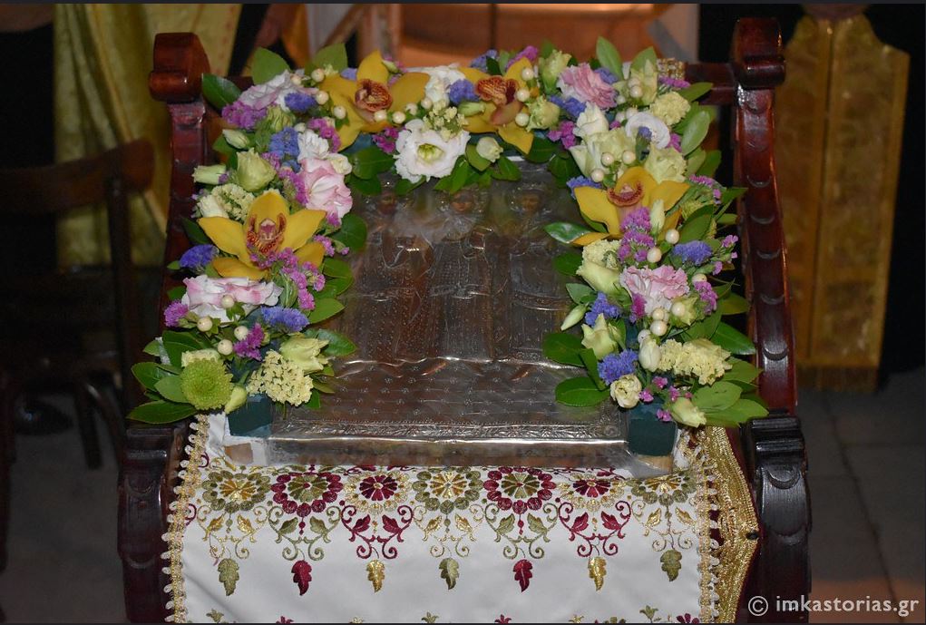 Οι εορτασμοί ξεκίνησαν το εσπέρας της Τρίτης με τον Μέγα Πανηγυρικό Αρχιερατικό Εσπερινό, κατά τον οποίο, πέραν του Επισκόπου, συμμετείχαν πολλοί Ιερείς της Μητροπολιτικής Περιφέρειας. Οι αρτοκλασίες διαβάστηκαν κατά την Λιτή, η οποία πραγματοποιήθηκε εν πομπή στον αύλειο χώρο της Μονής. Εκεί, ο Σεβασμιώτατος αναφέρθηκε στον λόγο του στους Αγίους Αναργύρους ως πρότυπα πίστεως και σύστησε να γίνουν για όλους οι απλανείς οδηγοί στη ζωή του καθενός.
