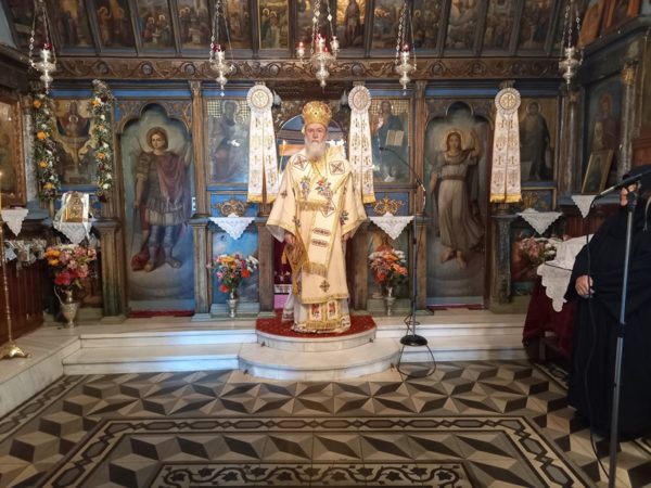Λίγο πριν την απόλυση της Θ. Λειτουργίας ο Σεβ. Μητροπολίτης κ. Διονύσιος αναφέρθηκε στην Λαμπροφόρο Ανάσταση του Κυρίου μας, η οποία εφέτος εορτάζεται κάτω από τη σκιώδη πραγματικότητα του κορωνοϊού. Ολόκληρη η ανθρωπότητα στενάζει και υπομένει τα δεινά, που η δήθεν αυτοδυναμία του ανθρώπου, σαφώς και δεν κατάφερε να αντιμετωπίσει και αντί για ανακούφιση, επέφερε βαρύ φορτίο σε όλο τον κόσμο. Ωστόσο όμως, η Ανάσταση του Χριστού προσφέρει μήνυμα ελπίδος και ζωής αιωνίου, προφέρει μια διαφορετική οπτική, η οποία μας μεταφέρει από τα σαρκικά, τα επίγεια, στα πνευματικά, στα επουράνια.