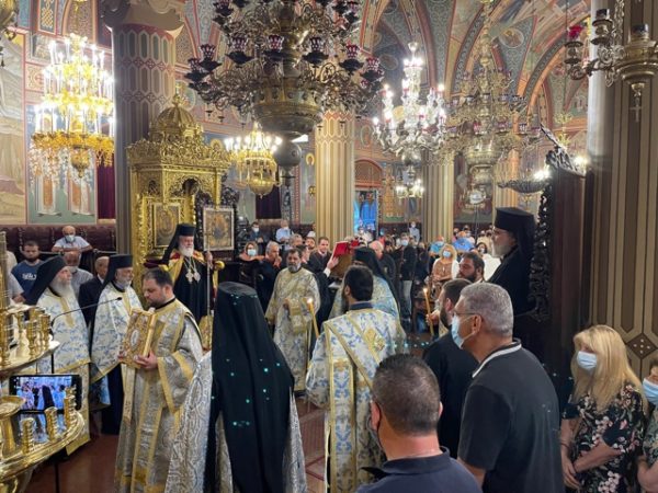 Το εσπέρας της 14ης Αυγούστου τελέστηκε ο Πανηγυρικός Αρχιερατικός Εσπερινός στο Καθολικό της Ιεράς Μονής Παναγίας του Κύκκου.