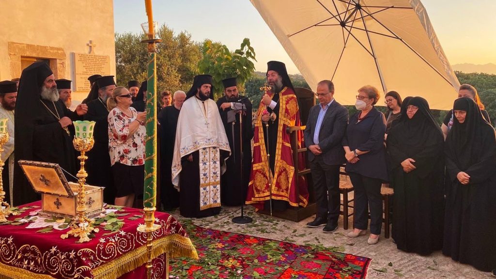 Παρέστησαν η Αντιπεριφερειάρχης Ρεθύμνης κ. Μαίρη Λιονή, ο Δήμαρχος Ρεθύμνης κ. Γεώργιος Μαρινάκης, ο Πρωτοσύγκελλος της Ιεράς Μητροπόλεως Λάμπης, Συβρίτου και Σφακίων, Πανοσιολ. Αρχιμ. Αθανάσιος Καραχάλιος, ο Ηγούμενος της Ιεράς Πατριαρχικής και Σταυροπηγιακής Μονής Αγίου Γεωργίου Αρσανίου, Πανοσιολ. Αρχιμ. Εφραίμ Μανουσάκης, οι Ηγουμένες των Ιερών Μονών Σωτήρος Χριστού Κουμπέ, Οσιωτ. Γερόντισσα Μαριάμ, και Αγίας Ειρήνης, Οσιωτ. Γερόντισσα Θέκλα, πολλοί κληρικοί της Μητροπόλεως και πλήθος πιστών.