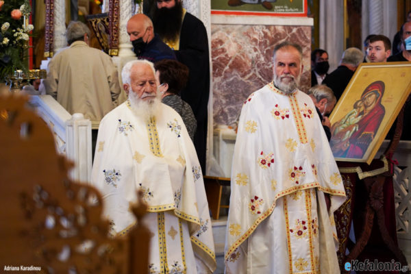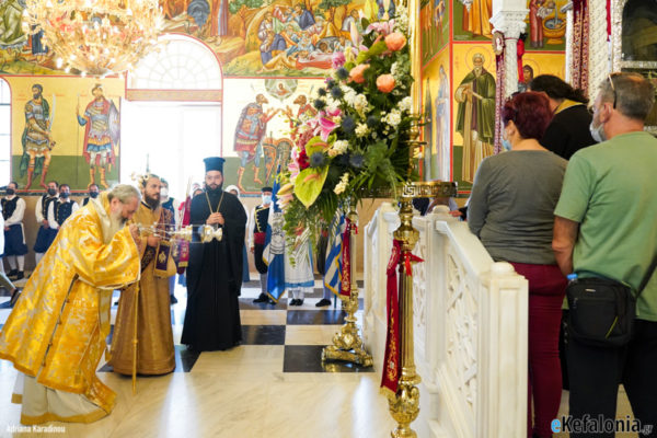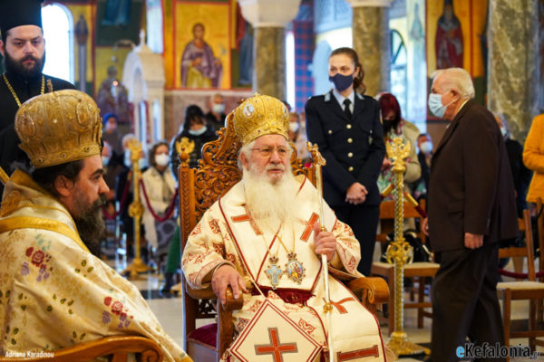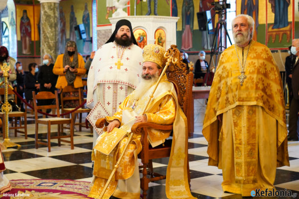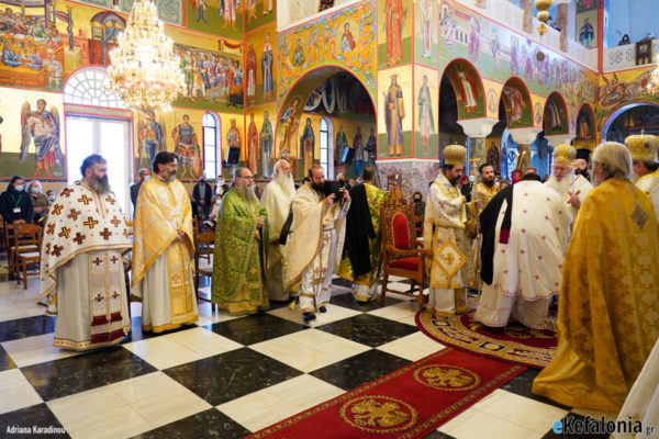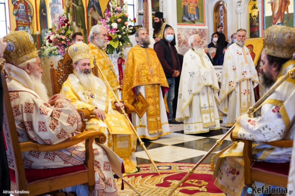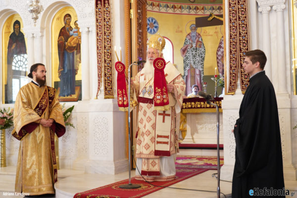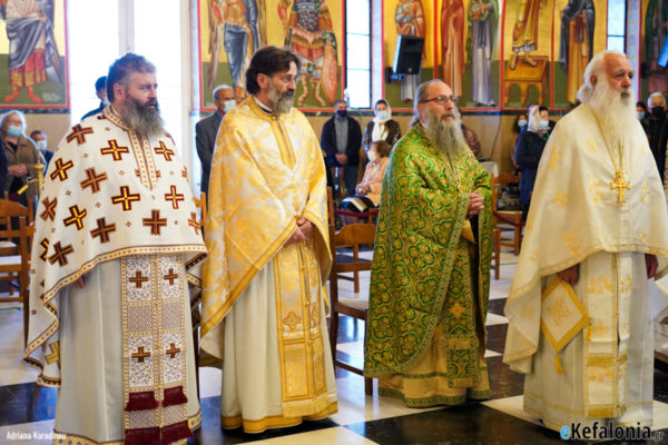 Στη Θεία Λειτουργία ιερούργησε ο Σεβασμιώτατος Μητροπολίτης Θηβών και Λεβαδείας κ. Γεώργιος, συλλειτουργούντων των Σεβασμιωτάτων Μητροπολιτών Καστορίας κ. Καλλίνικου και του οικείου Μητροπολίτου Κεφαλληνίας κ. Δημήτριου.