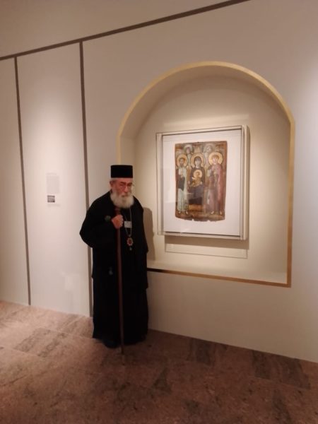 Στην έκθεση κλήθηκε και συμμετέχει με κειμήλιά της η Αυτόνομη Μονή Σινά, που εκπροσωπήθηκε από τον Σεβασμιώτατο Αρχιεπίσκοπο Σιναίου κ. Δαμιανό, ο οποίος απέσπασε έντονο το ενδιαφέρον των προσκεκλημένων.