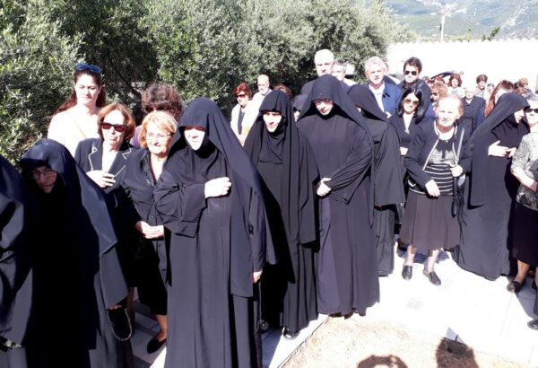 Αντιπροσωπείες από άλλες μοναστικές αδελφότητες, εκπρόσωποι αρχών και φορέων, αλλά και πλήθος κόσμου προσήλθαν στην Εξόδιο Ακολουθία προκειμένου να προσκυνήσουν το σκήνωμα της μακαριστής Γερόντισσας.