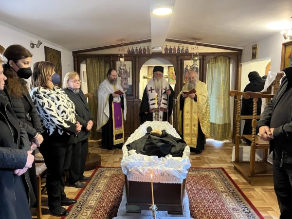 Στην εξόδιο ακολουθία, που έγινε την Τρίτη 28 Μαρτίου 2022, χοροστάτησε ο Σεβασμιώτατος Μητροπολίτης Θηβών και Λεβαδείας κ. Γεώργιος.