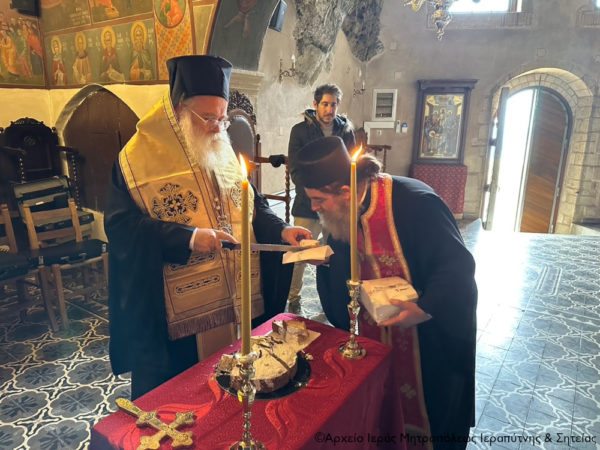 Ο Σεβ. Μητροπολίτης Ιεραπύτνης και Σητείας κ. Κύριλλος μετέβη σήμερα στην ιστορική Ιερά Μονή Παναγίας Φανερωμένης Ιεράπετρας, για να ευλογήσει την Αγιοβασιλόπιτα και να ευχηθεί τα δέοντα στον Ηγούμενο και τους Πατέρες της Μονής, εν όψει της εισόδου μας στο νέο πολιτικό έτος.