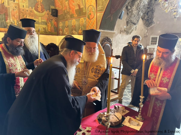 Ο Σεβ. κ. Κύριλλος αφού ευλόγησε και διένειμε την Βασιλόπιτα στο Καθολικό της Μονής, επέδωσε στον Ηγούμενο Πανοσιολ. Αρχιμ. Παΐσιο Δερμιτζάκη την ανανέωση του διορισμού του ως Ηγουμένου και Προέδρου της Διοικούσας Διαχειριστικής Επιτροπής της Μονής για την επόμενη τετραετία 2025-2028, σύμφωνα με τον Καταστατικό Χάρτη της Εκκλησίας Κρήτης, και τον διορισμό ως Μελών της Επιτροπής στον Αδελφό της Μονής Οσιολ. π. Τίτο Ματαλλιωτάκη και στον Αιδεσ. πρωτ. π. Σάββα Λιναρδάκη, Αρχιερατικό Επίτροπο Β´ Περιφέρειας και προϊστάμενο της Ενορίας Παναγίας Ελεούσας Ιεράπετρας, ευχόμενος γόνιμη και καρποφόρα πνευματικά θητεία για την προαγωγή και την κατά Θεόν πρόοδο της ιστορικής Μονής.