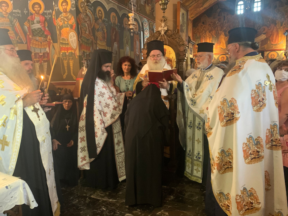 Τέλος, ευχήθηκε πατρικώς στη νέα Μοναχή να λαμβάνει ενίσχυση και παρηγοριά από τον Νυμφίο και Αγωνοθέτη Κύριο Ιησού Χριστό, ο οποίος θα είναι «συγκοιταζόμενος, συνανιστάμενος, γλυκαίνων και ευφραίνων την καρδίαν» της, και να έχει τις ακοίμητες πρεσβείες και την σκέπη της Υπεραγίας Θεοτόκου «του Άξιόν Εστι» και πάντων των Αγίων. Επίσης, ευχήθηκε στην Ηγουμένη Μοναχή Χρυστονύμφη και τον πολιό Γέροντα και Πνευματικό του μοναστηριού Αρχιμ. Αναστάσιο Χατζάκη πνευματική πρόοδο και αύξηση της Αδελφότητας της Μονής.