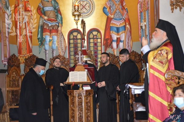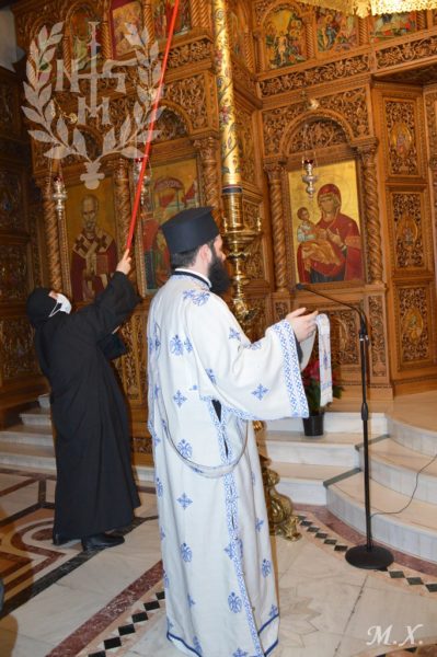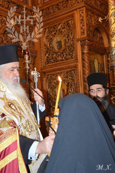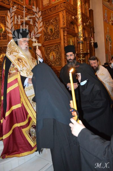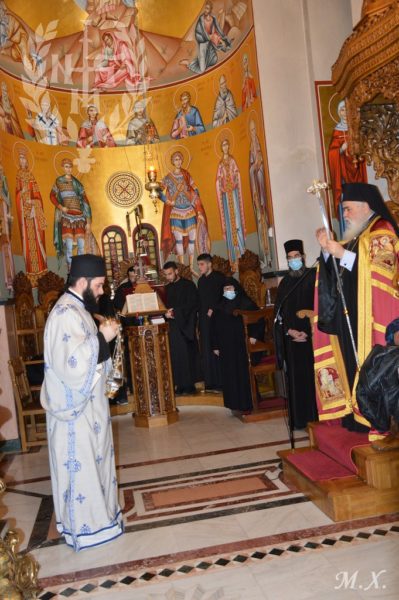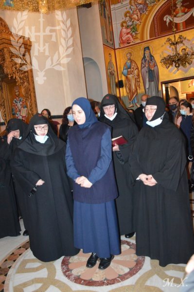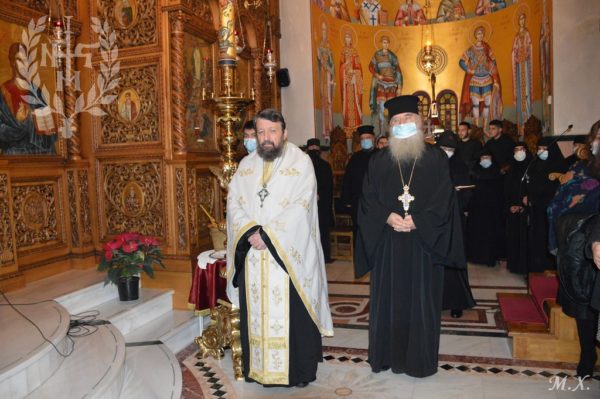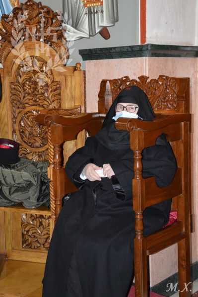 Ο Σεβασμιώτατος ευχαρίστησε τον π. Γεώργιο Μίλκα του οποίου πνευματικό παιδί ήταν η μοναχή Αικατερίνη, καθώς και τον π. Βασίλειο Βύρλιο για τη φροντίδα του για το Μοναστήρι, καθώς και για την προσφορά των κερασμάτων.