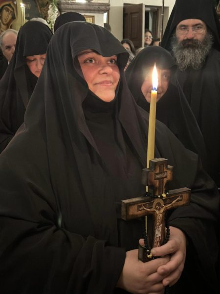 Στο τέλος του εσπερινού και κατά την μοναστηριακή τάξη ο Σεβασμιώτατος τέλεσε την ακολουθία της μοναχικής κουράς της δοκίμου μοναχής Εμμανουέλας Σιγάλα, εξ Εμπορείου Θήρας καταγωμένης, η οποία και ονομάσθηκε Φιλοθέη μοναχή.