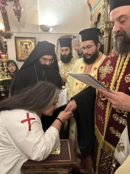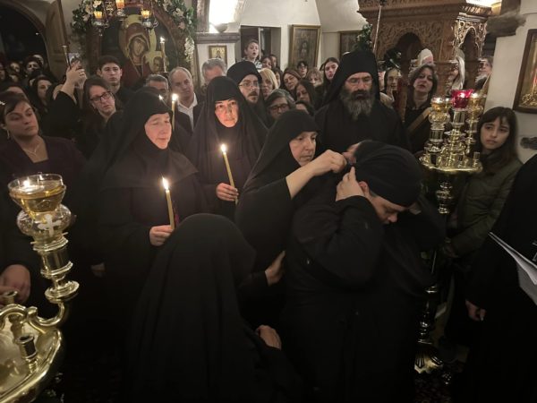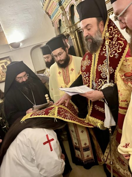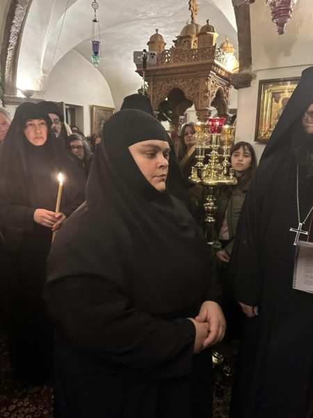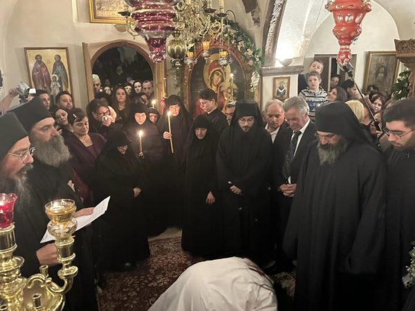 Στο τέλος του εσπερινού και κατά την μοναστηριακή τάξη ο Σεβασμιώτατος τέλεσε την ακολουθία της μοναχικής κουράς της δοκίμου μοναχής Εμμανουέλας Σιγάλα, εξ Εμπορείου Θήρας καταγωμένης, η οποία και ονομάσθηκε Φιλοθέη μοναχή.