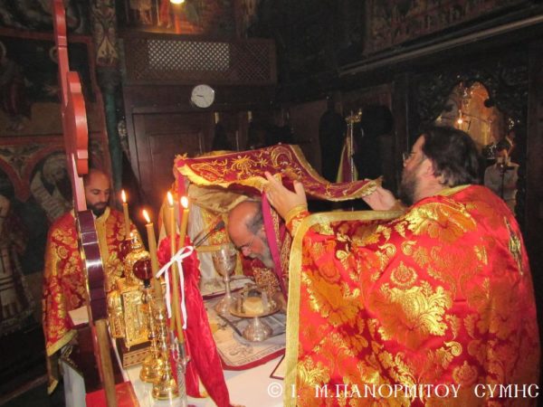 Μετά τήν ἀπόλυσιν ὁ π. Παῦλος ἐδέχθη τίς ἐγκάρδιες εὐχές τοῦ Ἱ. Κλήρου, τῶν οἰκείων του καί τῶν πολυπληθῶν πιστῶν, πρός τούς ὁποίους διένειμε ὡς εὐλογία καί ἐνθύμιον, εἰκονίδιον τοῦ Ταξιάρχου. Τέλος προσεφέρθησαν εἰς ὅλους τά μοναστηριακά κεράσματα, ἐνῶ ἡ Ἱ. Μονή τήν μεσημβρία, παρέθεσε στήν Μεγάλη Τράπεζα ἑόρτιον γεῦμα.