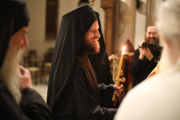 Σᾶς εὐχαριστῶ γι᾽ αὐτήν τή μεγάλη εὐλογία πρός ἐμένα: ἔγινα μοναχός καί σήμερα χειροτονοῦμαι διάκονος.