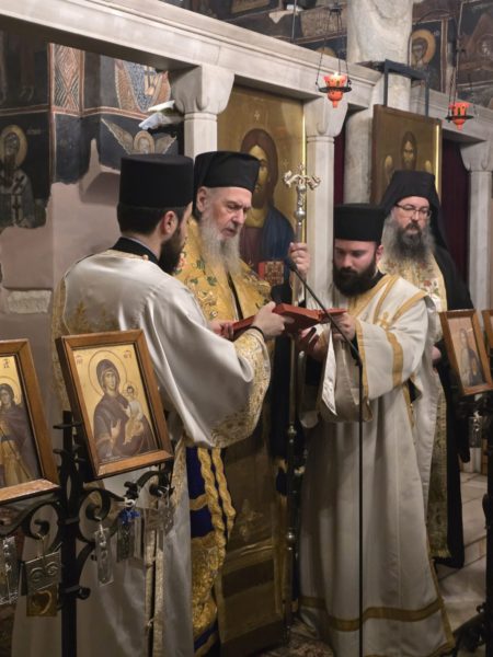 Το απόγευμα του Σαββάτου της Τυρινής στο τέλος του Εσπερινού τελέσθηκε σεπτή Ευλογία του Μακαριωτάτου Αρχιεπισκόπου Αθηνών & Πάσης Ελλάδος κ.κ. Ιερωνύμου του Β’, υπό του Πανιερωτάτου Μητροπολίτου Θαυμακού κ. Ιακώβου, του Καθηγουμένου της Ιεράς Μονής Ασωμάτων Πετράκη, η Κουρά του αδελφού αυτής δοκίμου Fedoriv Volodymyr- Βλαδίμηρου, μετωνομάσαντος αυτόν εις Βησσαρίωνα Μοναχόν.