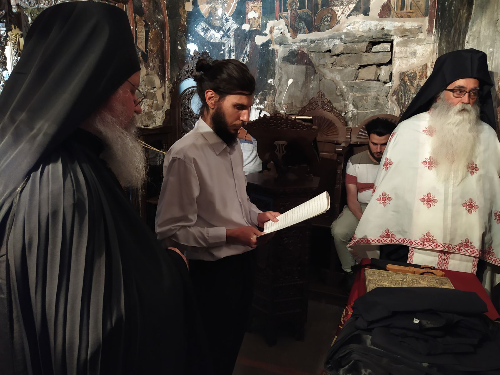 Ο δόκιμος αδελφός της Ιεράς Μονής Δημήτριος, απόφοιτος δύο Τεχνολογικών Εκπαιδευτικών Ιδρυμάτων, ενδύθηκε διά χειρών του Σεβασμιωτάτου κ. Ανδρέου, το ευλογημένο ράσο της κατά Θεόν πάλης, λαμβάνοντας από τον Γέροντά του Πανοσιολογιώτατο Αρχιμανδρίτη π. Αρσένιο Μάιπα, το όνομα του Προφητάνακτος Δαυίδ.