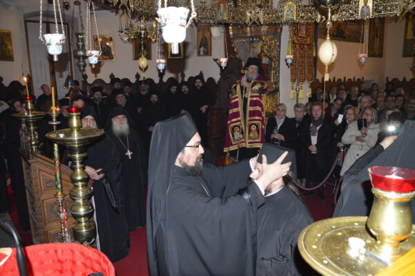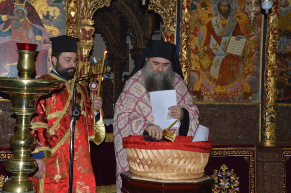 Μετά την Ακολουθία της ρασοευχής τελέσθηκε πανηγυρικό Αρχιερατικό Συλλείτουργο ιερουργούντος του Σεβασμιωτάτου Ποιμενάρχου Κυδωνίας και Αποκορώνου κ. Δαμασκηνού και συλλειτουργούντος του Θεοφιλεστάτου Επισκόπου Δορυλαίου κ. Δαμασκηνού.