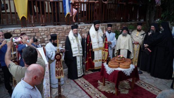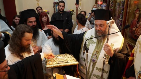 Κατ’ αυτόν Χοροστάτησε, ο παρεπιδημών στην Ιερά Μητρόπολη Τρίκκης, Θεοφιλέστατος Επίσκοπος Πατάρων κ. Αθηναγόρας, Βοηθός του Σεβασμιωτάτου Αρχιεπισκόπου Καναδά κ. Σωτηρίου, και συγχοροστάτησε ο Σεβασμιώτατος Μητροπολίτης Τρίκκης και Σταγών κ. Χρυσόστομος.