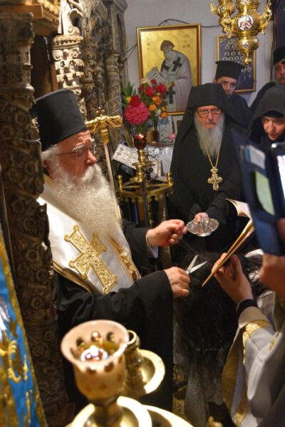 Στην Κουρά παρέστη συμπροσευχόμενος ο Θεοφ. Επίσκοπος Ολβίας κ. Επιφάνιος (της Ορθόδοξης Αυτοκέφαλης Εκκλησίας της Ουκρανίας), ενώ συμμετείχαν ο Ηγούμενος της Ιεράς Μονής Εσφιγμένου Αγίου Όρους Αρχιμ. Βαρθολομαίος, πολλοί Κληρικοί μας, αντιπροσωπείες Ιερών Μονών, ο Αστυνομικός Δ/ντής Μαγνησίας κ. Βασίλειος Καραΐσκος και πλήθος προσκυνητών.