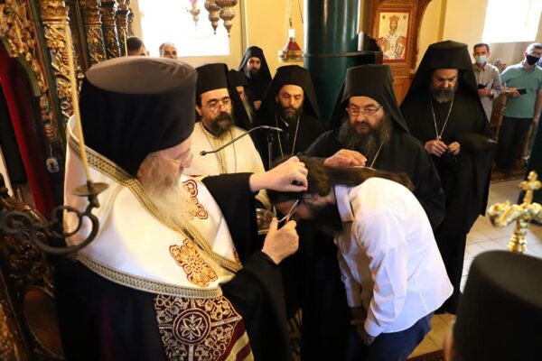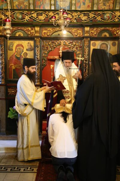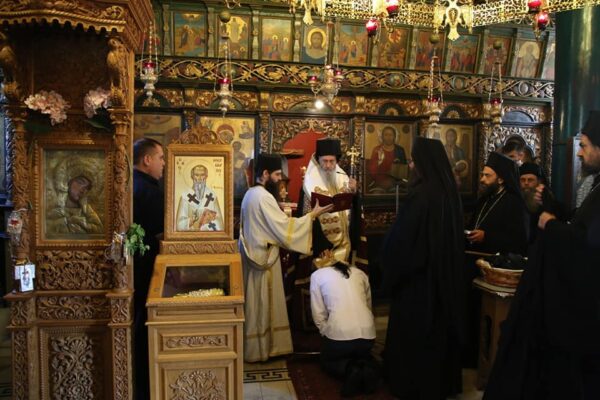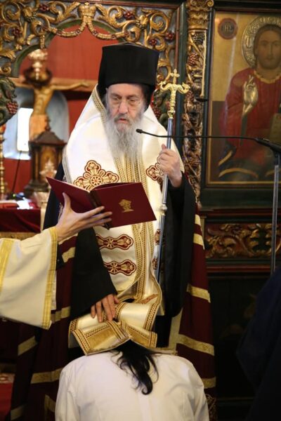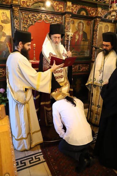 Ο Σεβασμιώτατος συνεχάρη τον νέο μοναχό, και, κυρίως, συνεχάρη και ευχαρίστησε τον Ηγούμενο της Μονής π. Πολύκαρπο, για τον αγώνα του για την Ιερά Μονή και την πιστότητά του στην μοναστική παράδοση.